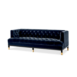 Современная интерпретация классической мебели в стиле Честерфилд, это стильное кресло излучает вечное очарование. Обивка из бархата Savona тёмно-синего цвета с глубокими пуговицами и ножки в отделке чёрного и латуни придают вашему интерьеру изысканность.